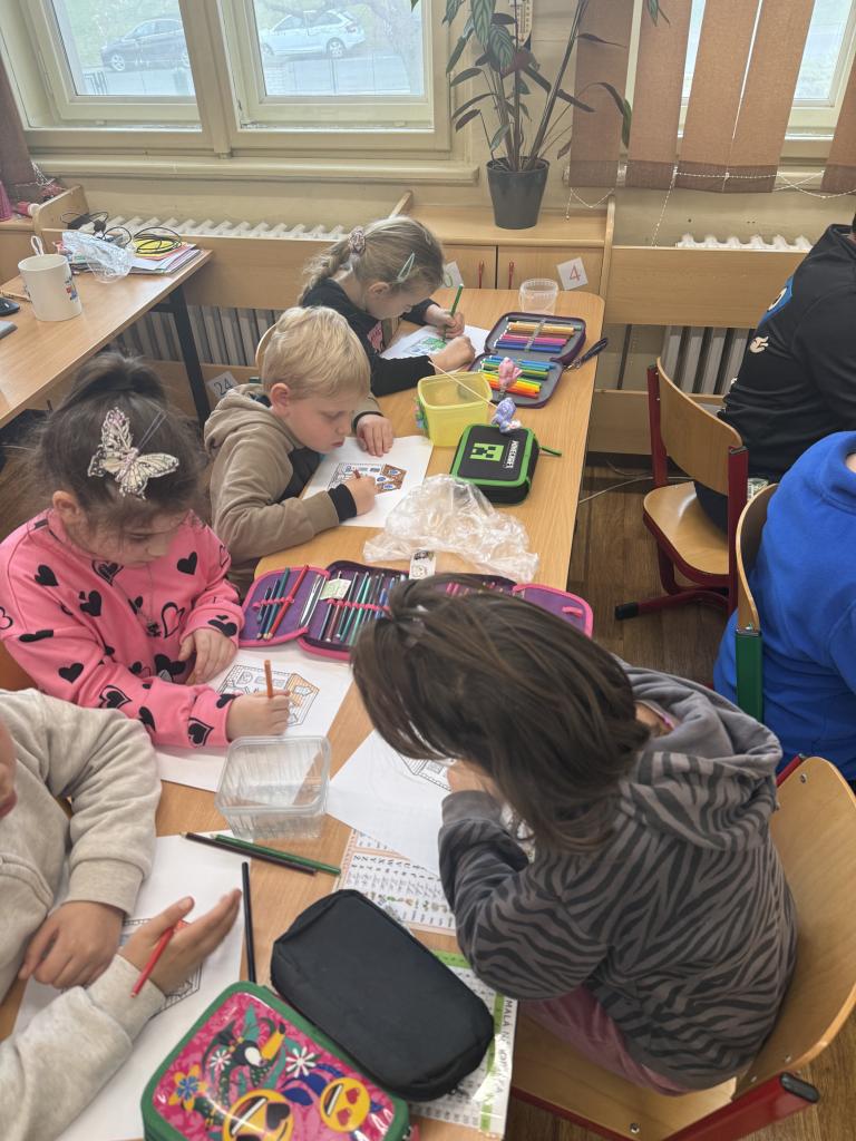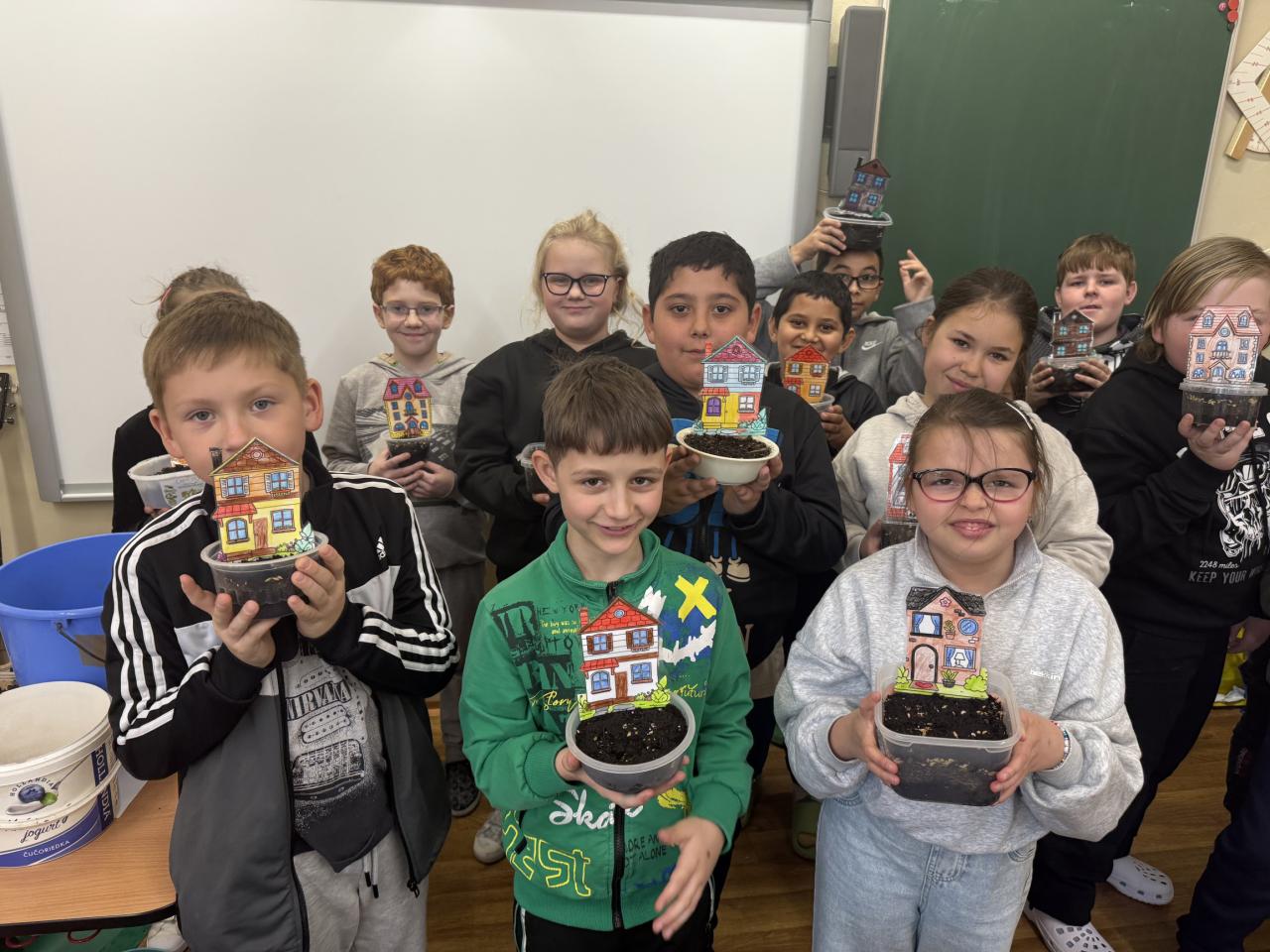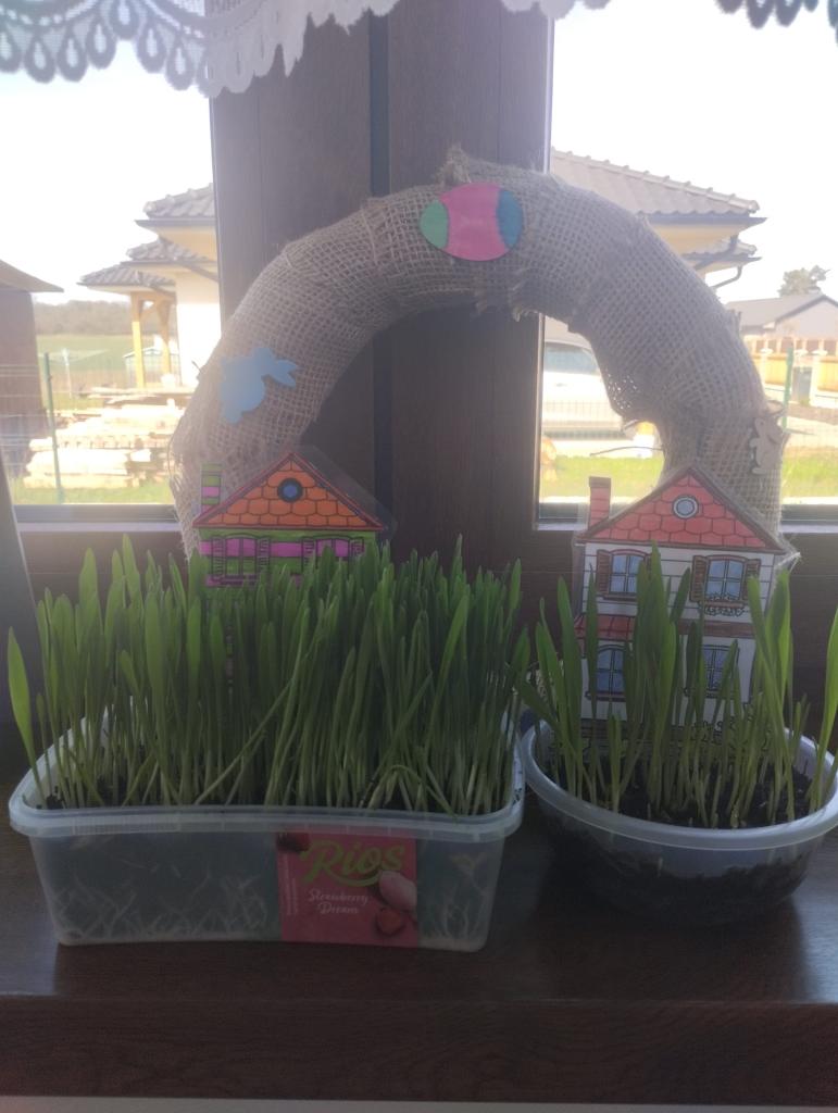 V rámci příprav na velikonoční svátky jsme si s žáky na prvním stupni užili krásnou tvořivou aktivitu. Každý žák si vyrobil svůj vlastní domeček s předzahrádkou z osení. Domečky si žáci nejprve pečlivě vybarvili, poté vystřihli a zalaminovali, aby domečky vydržely co nejdéle. Nakonec se z domečků staly zápichy, které jsme zasadili do malých „zahrádek“ – kelímků či mističek naplněných hlínou a osením.