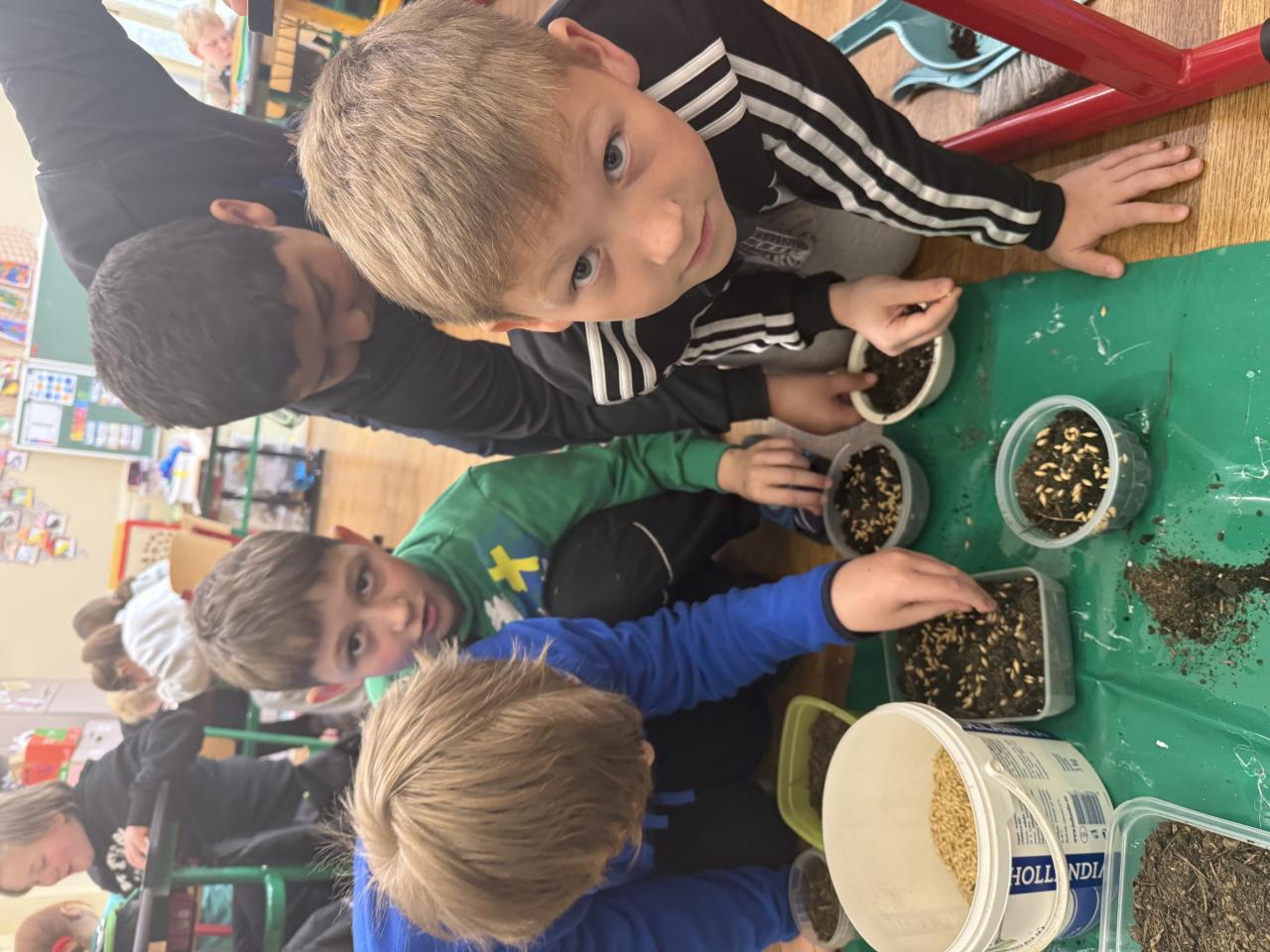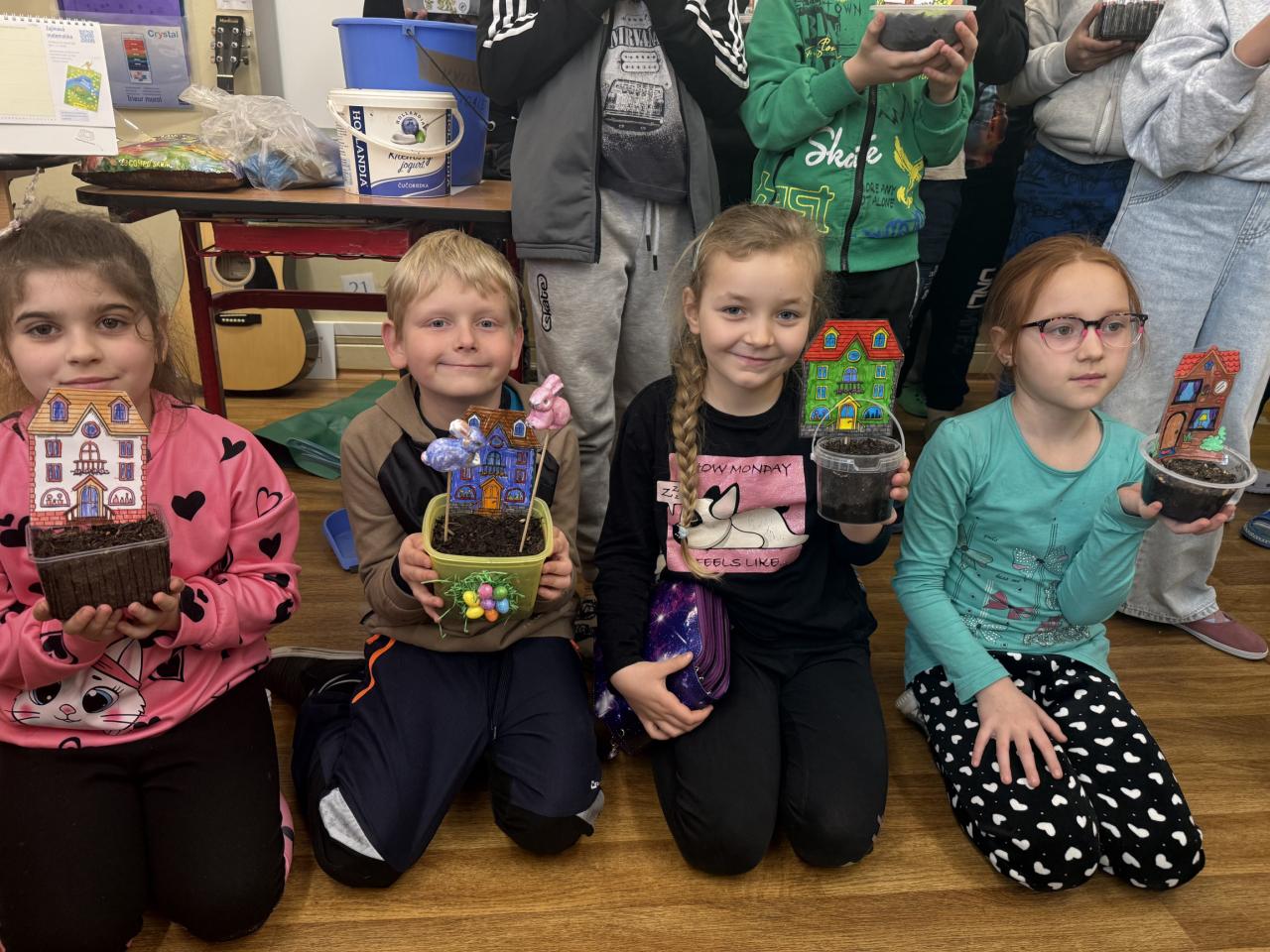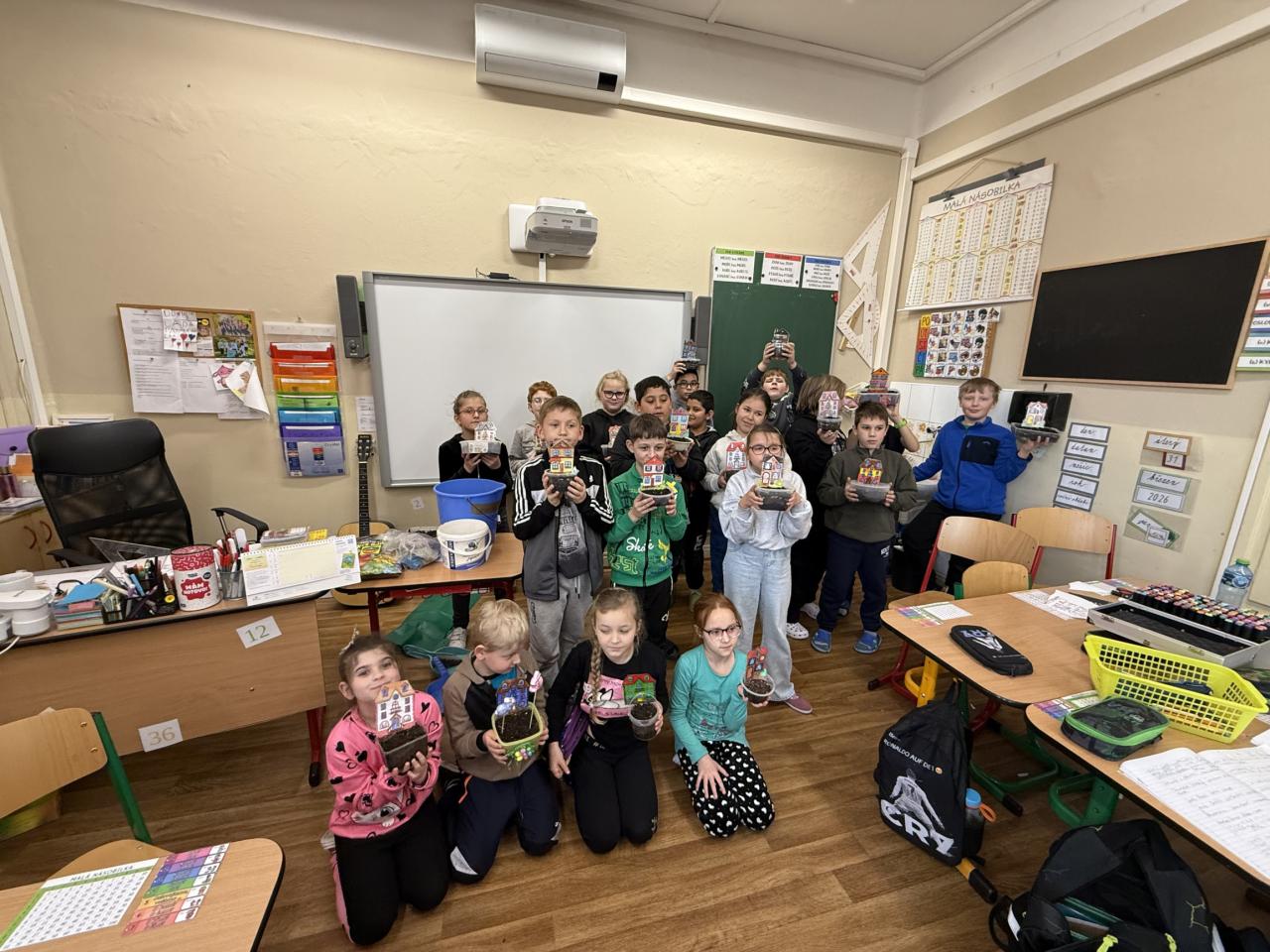 V rámci příprav na velikonoční svátky jsme si s žáky na prvním stupni užili krásnou tvořivou aktivitu. Každý žák si vyrobil svůj vlastní domeček s předzahrádkou z osení. Domečky si žáci nejprve pečlivě vybarvili, poté vystřihli a zalaminovali, aby domečky vydržely co nejdéle. Nakonec se z domečků staly zápichy, které jsme zasadili do malých „zahrádek“ – kelímků či mističek naplněných hlínou a osením.